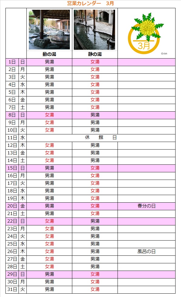 温泉カレンダー